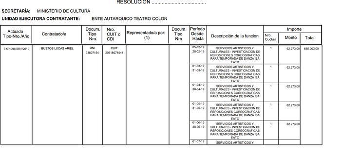 Lucas Ariel Bustos, muchacho vinculado a la danza y quien sería sobrino de Boschet, también se vio beneficiado con cuantiosos contratos para la temporada de danza del ISA.
